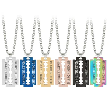Stainless Steel Man Punk Jewelry Engraved Hollow Razor Blade Pendant Necklace High Polished Link Chain Silver Plated Sweater